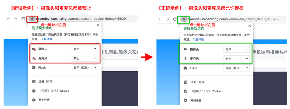 Chrome谷歌浏览器,摄像头和麦克风授权示例: